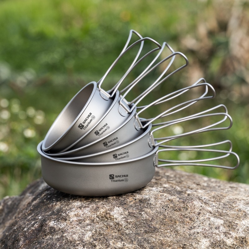 純チタン碗屋外携帯食器調理器具セット折りたたみキャンプフライパンフライパンキャンプチタン鍋フライパン