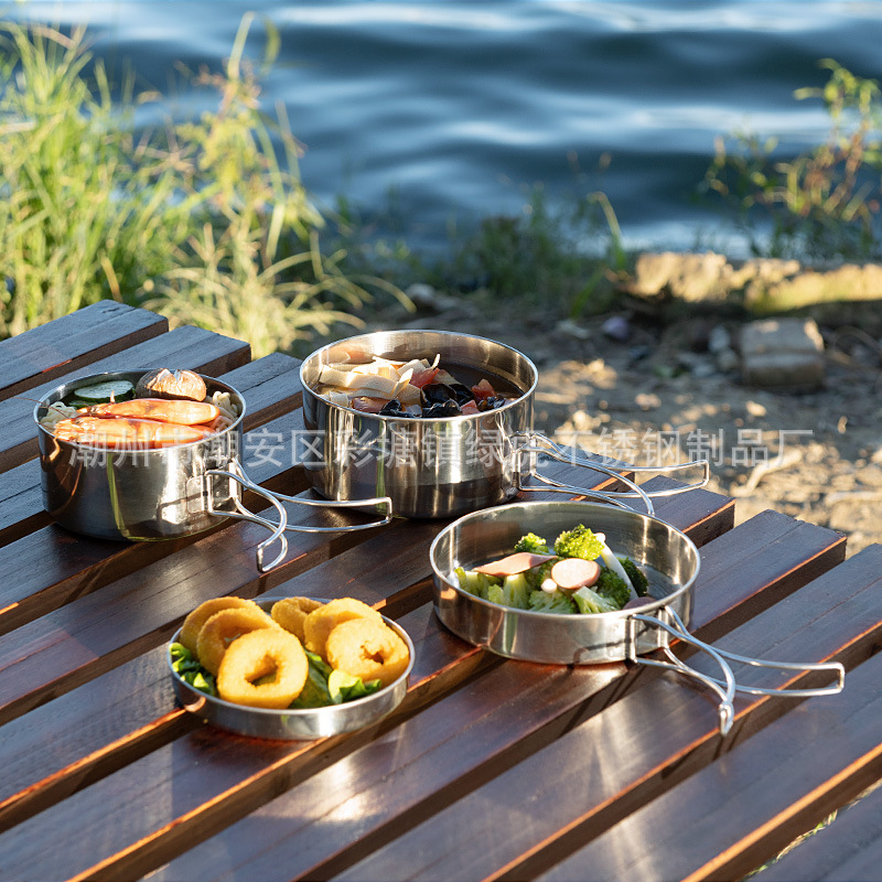 304ステンレス軽量化ブラックシラーボウルアウトドアシラーボウルキャンプ用食器ハンドルボウル登山キャンプボウル