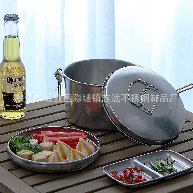 レトロ屋外鍋青芳工業風キャンプ鍋304ステンレススープ鍋ネット赤携帯バーベキュー鍋具