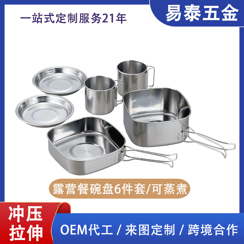 メーカーは型開きステンレスの食器を注文しました。6セットのキャンプ食器を持っています。