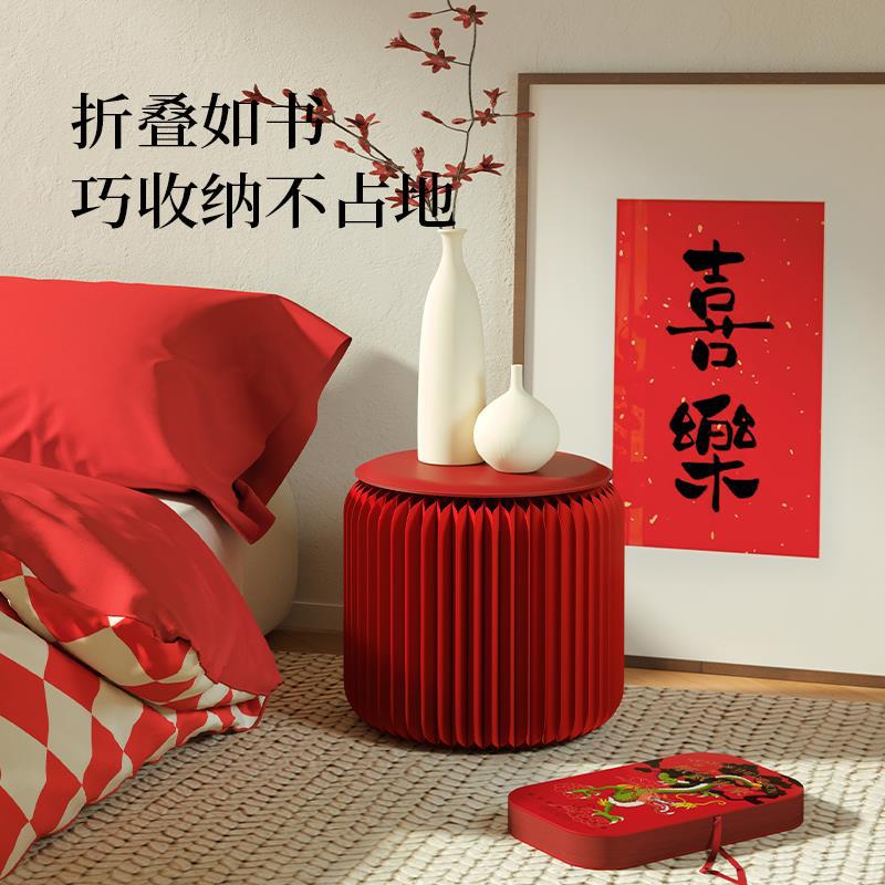 Qingmei 折りたたみスツール ロースツール ドレッシングスツール 家庭用靴交換用収納スツール 2024 新年辰年ギフト