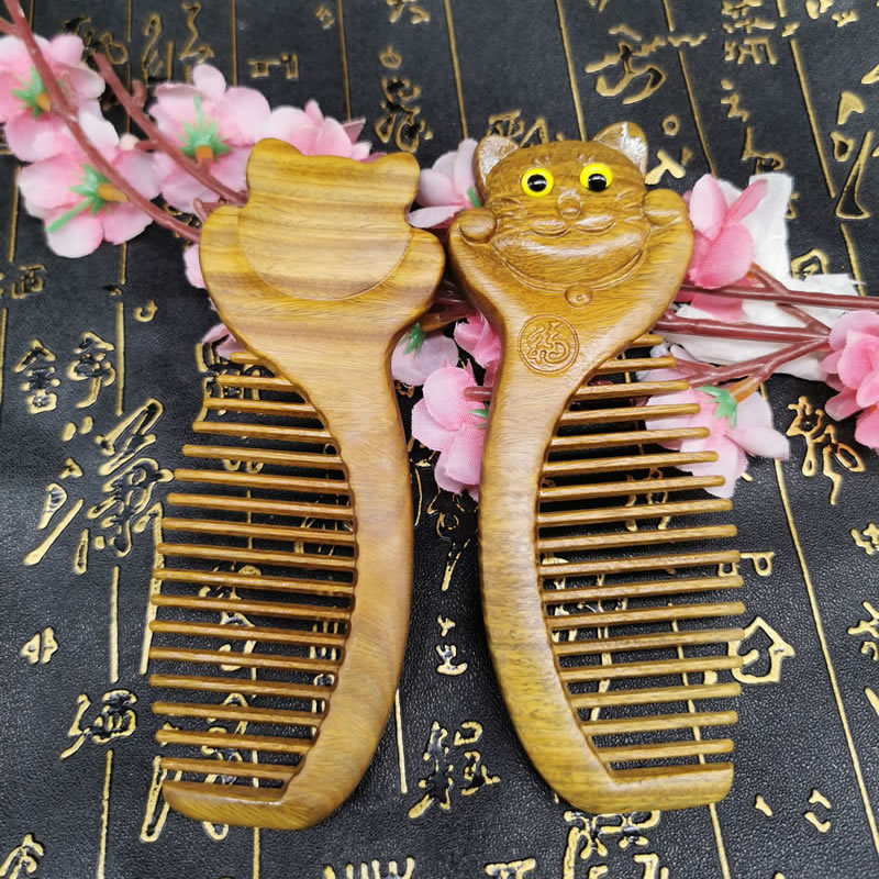 緑檀櫛香木彫刻かわいい猫木櫛女子誕生日プレゼント