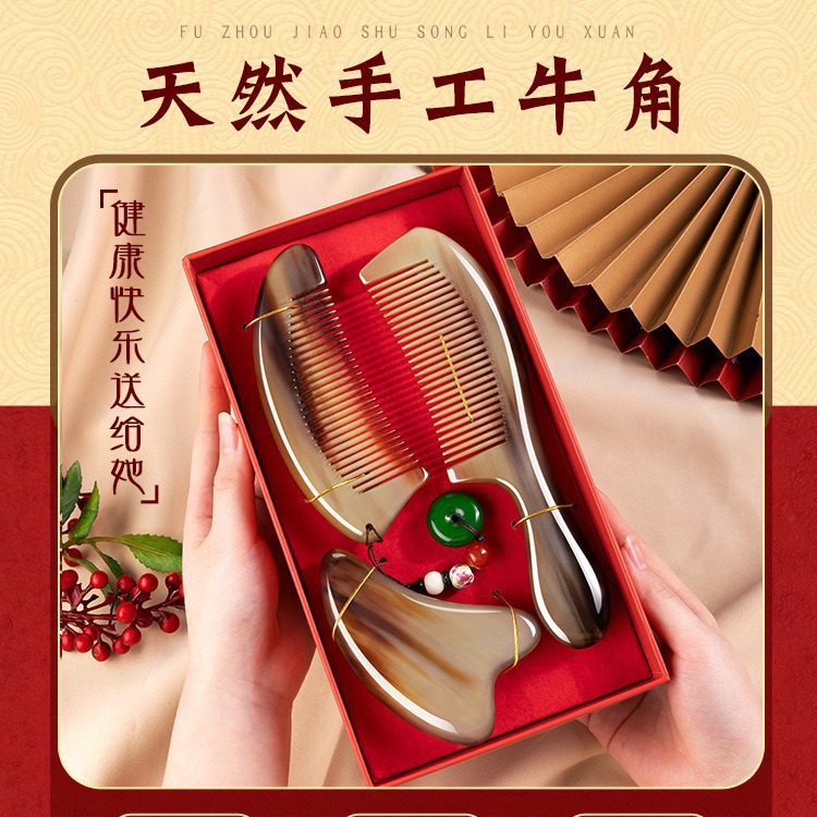 牛角櫛ギフトボックスセット公式櫛結婚ペア女性プレゼント彼女のお母さん