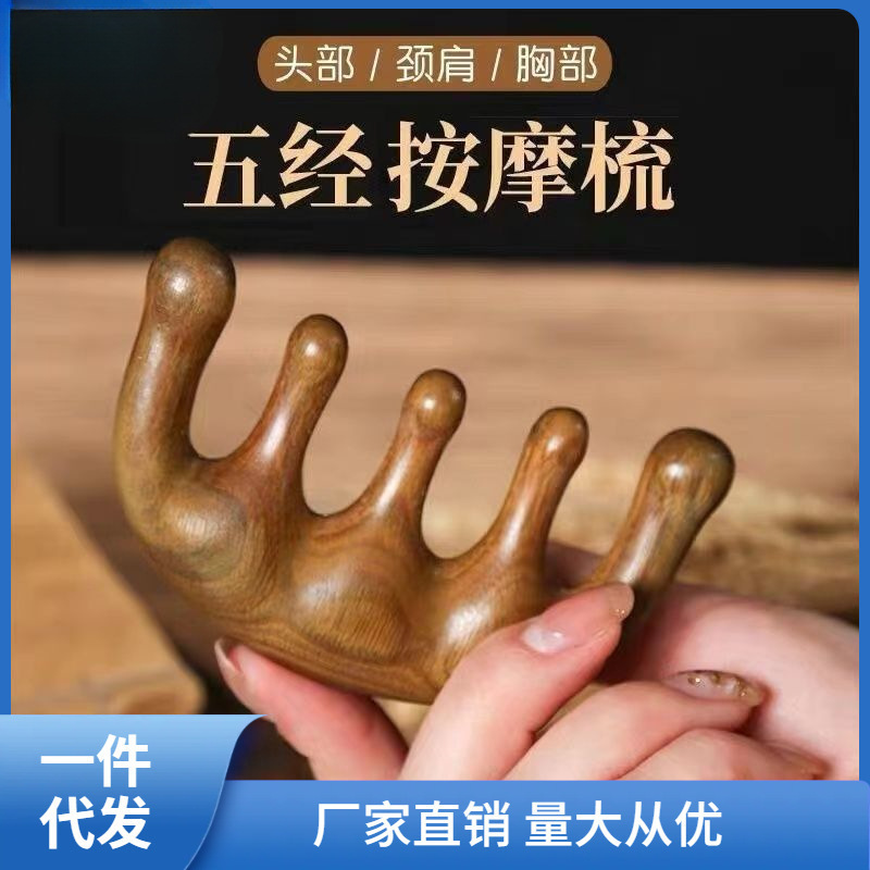 檀木マッサージ櫛五歯経絡櫛部静電気防止髪頭皮男女養生頭治療櫛