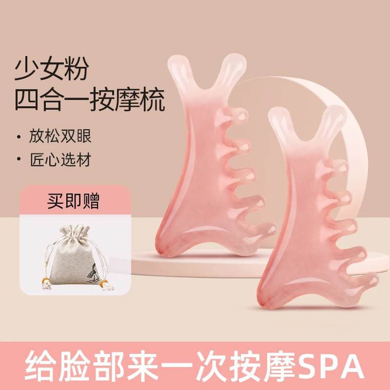 マッサージコーム、4-in-1サンダルウッドコーム、ヘッドセラピー、スクレーピング、経絡の浚渫、顔、目、頭皮、多機能
