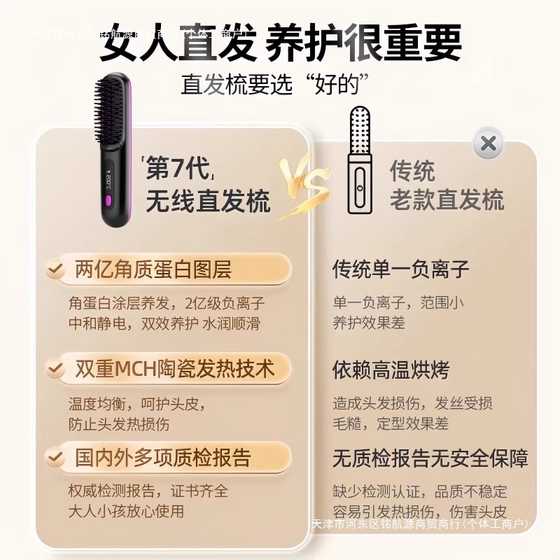 ポータブルカーリングストレートマイナスイオンストレートヘアコーム兼用ポータブル電気加熱コーム小型ワイヤレスふわふわ頭頂部送料無料
