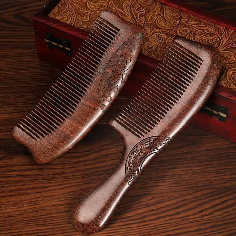 白檀両面彫刻白檀櫛木製ロングヘア専用静電気防止脱毛木製本物の純粋な天然