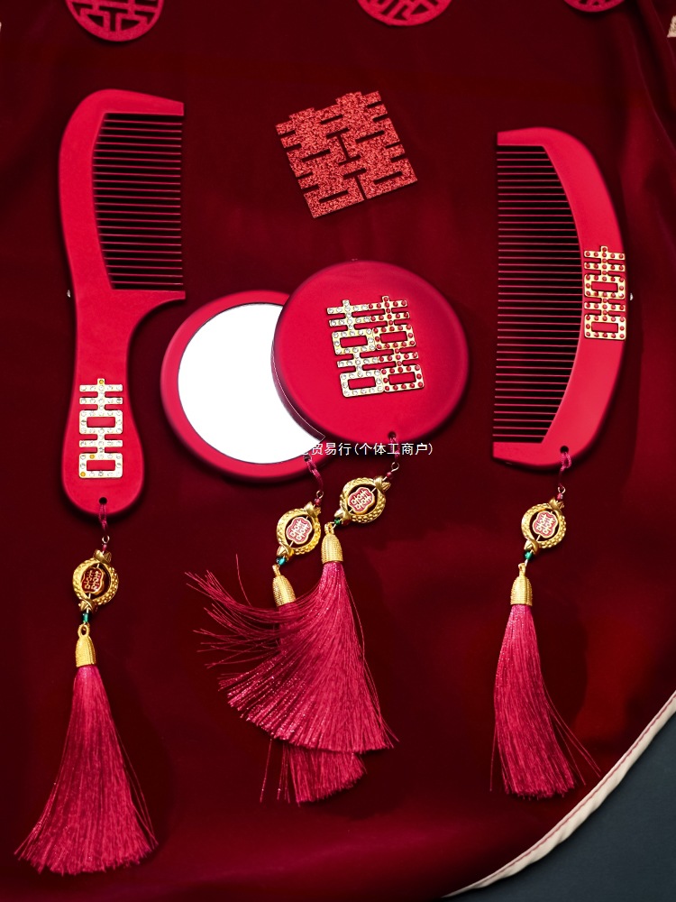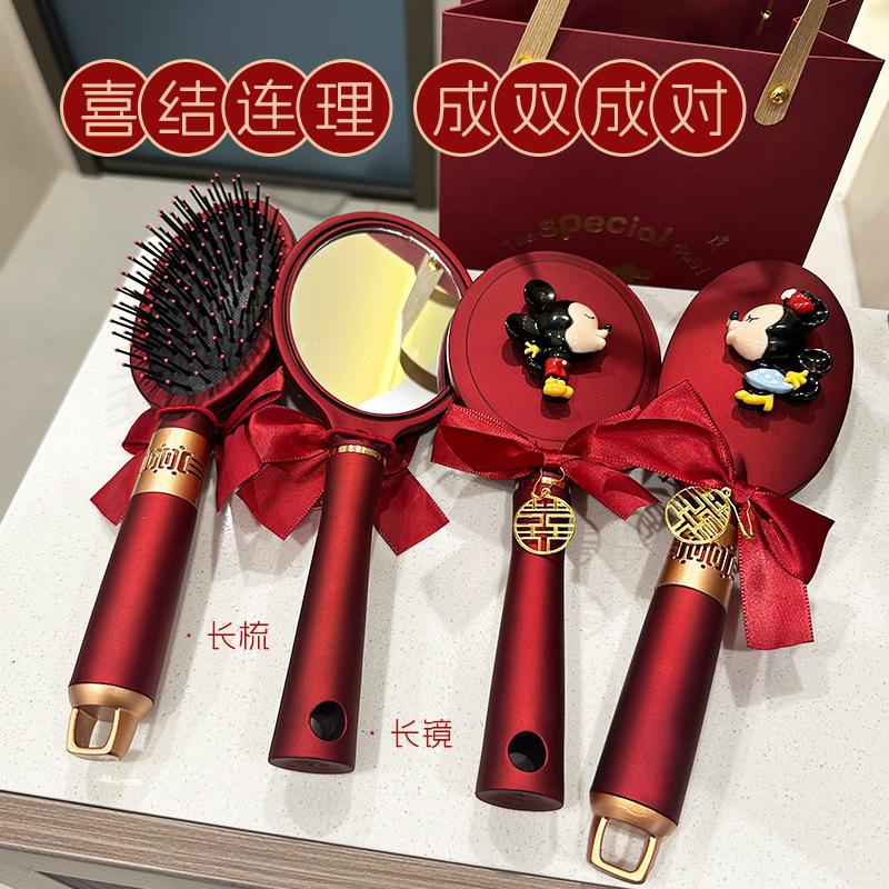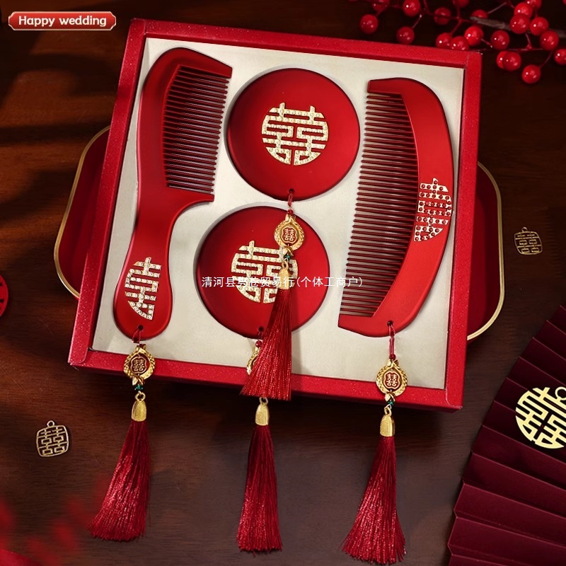 ミラーコーム結婚式の嫁入りペアセット赤いギフトボックス結婚式新婚花嫁ギフトハイエンドのウェディング用品