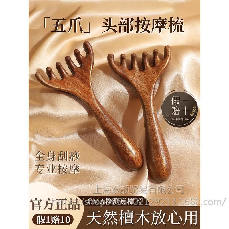 5本爪ヘッドマッサージ経絡コーム健康ヘッドセラピー器具天然サンダルウッド皮膚リンパスクレーピングアーティファクト