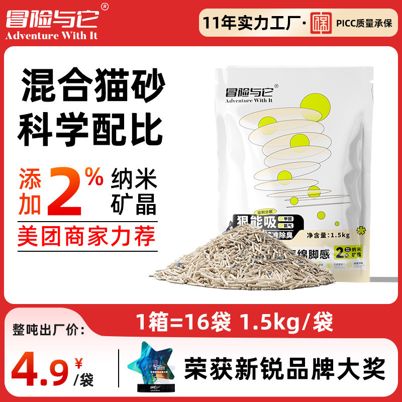 冒険とその混合豆腐猫砂ベントナイトナノ鉱晶猫砂消臭低塵携帯旅行装猫砂