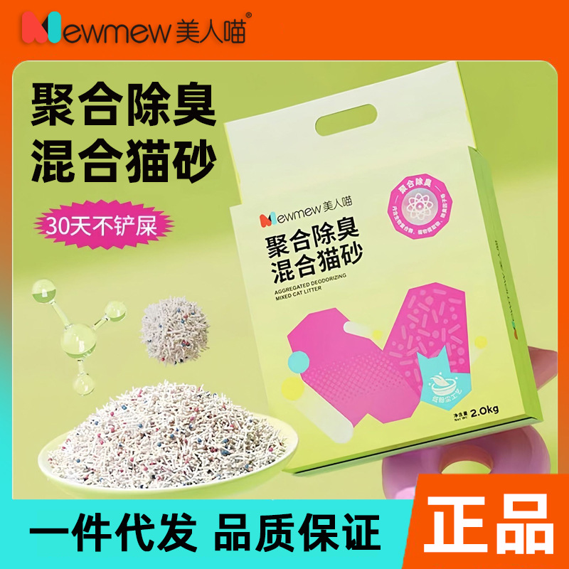 美人ニャンコ砂豆腐砂消臭低尘混合ベントナイト消臭可冲トイレ结団快