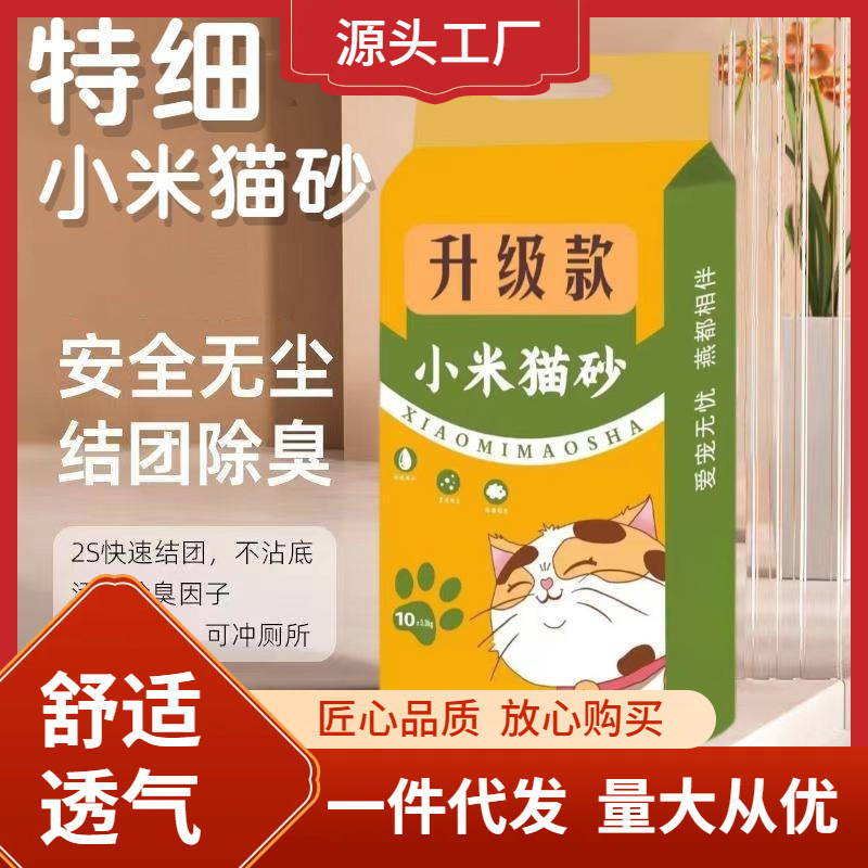 小米猫砂小粒猫砂消臭低塵小米粒砂超微細ベントナイト猫砂大袋耐久性結団