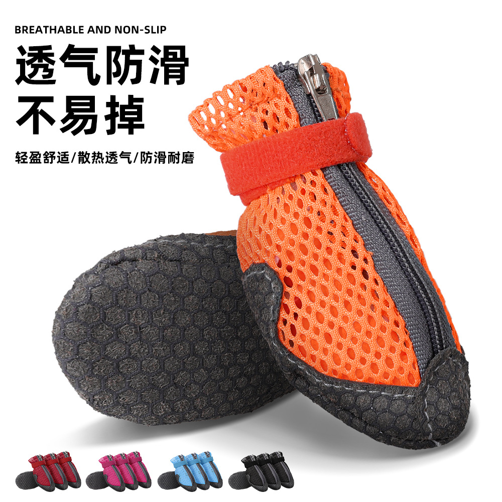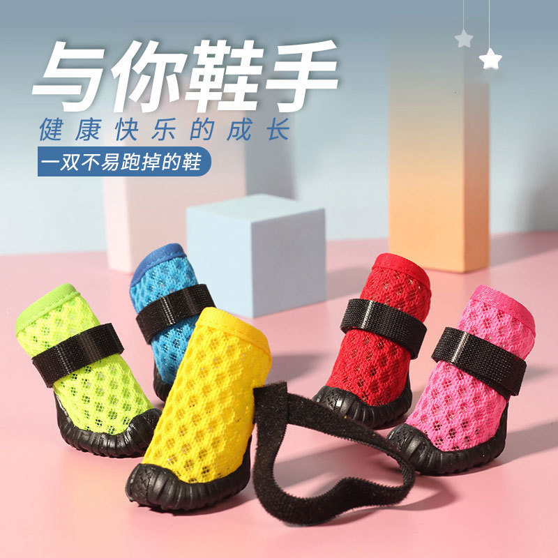 国境を越えたペット靴通気メッシュペット靴カバー耐摩耗性滑り止め中小型犬犬靴四季通用犬足カバー