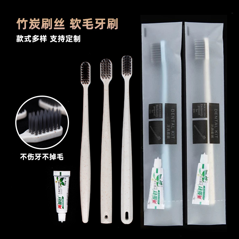 ホテル使い捨て歯ブラシ竹炭ソフト毛家庭用おもてなし客室専用洗面用品歯磨き粉セット卸売