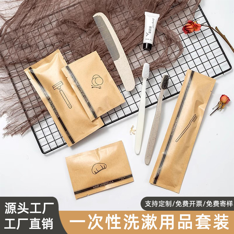 ホテル使い捨てセット民宿客室わら歯ブラシクラフト紙三辺封ホテル洗面用品卸売り