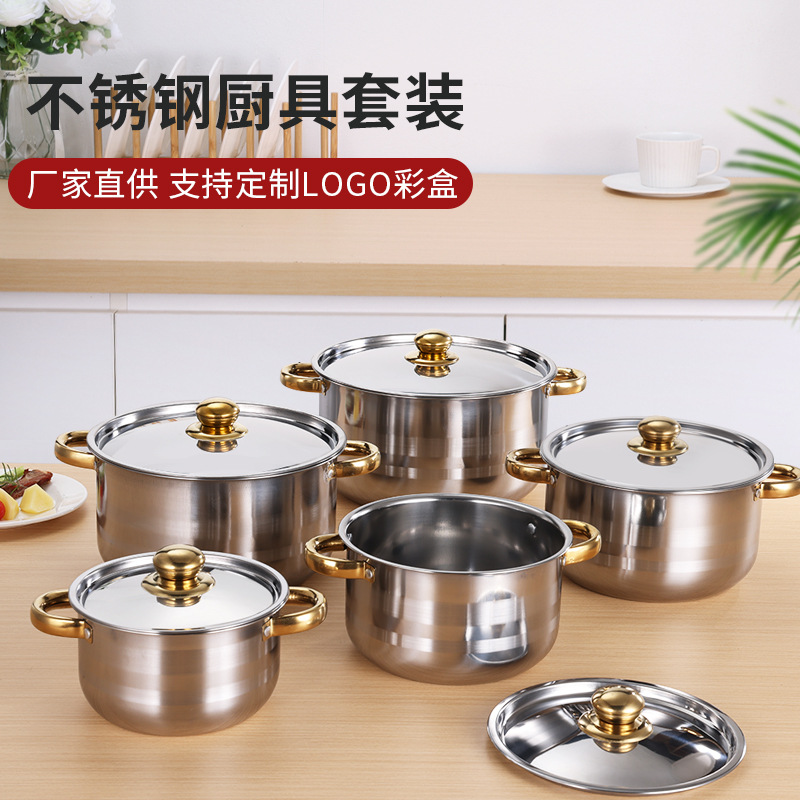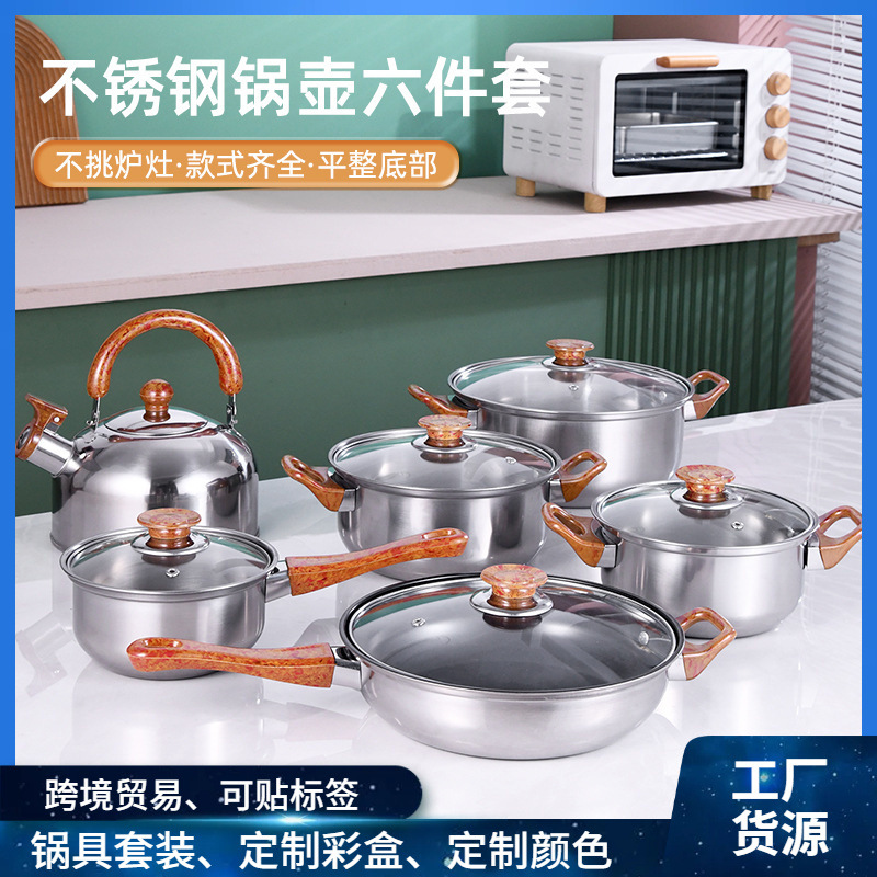 クロスボーダーステンレス鍋6点セット 鍋ラインハンドル ベークライトハンドル スープポット 16-20cm