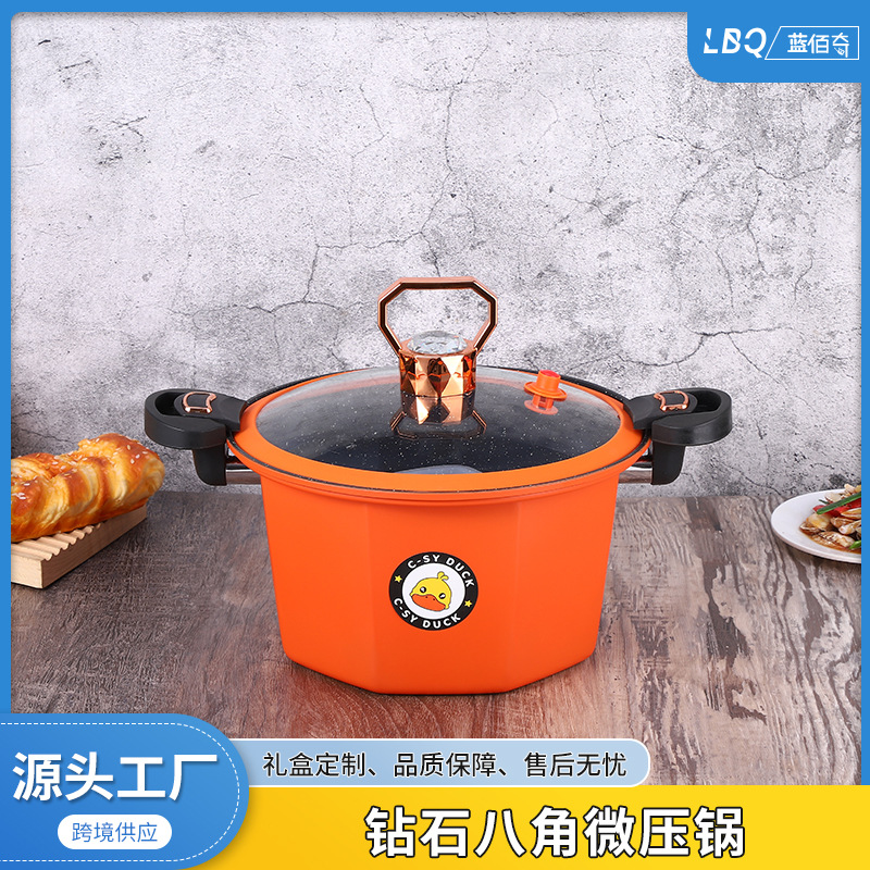 家庭用麦飯石煮込み鍋高颜値八角形微圧力鍋漫画小黄鴨煮込み汎用スープ鍋