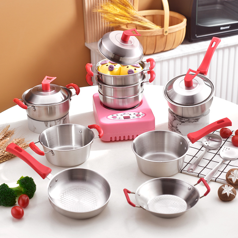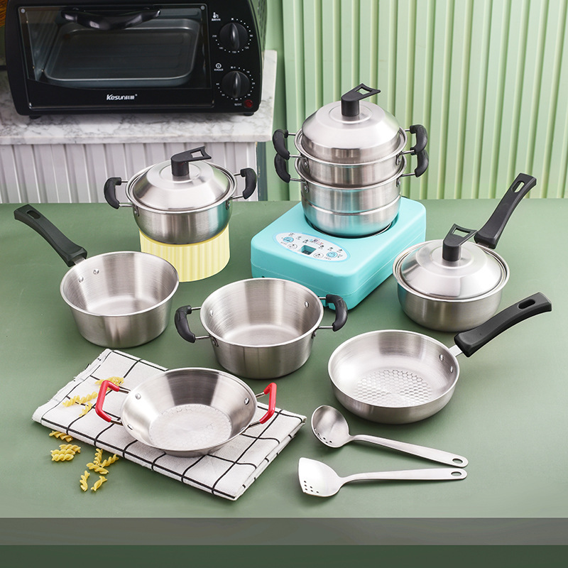 304ステンレス子供のミニ料理道具玩具セット台所は本当に家を煮て料理して調理する