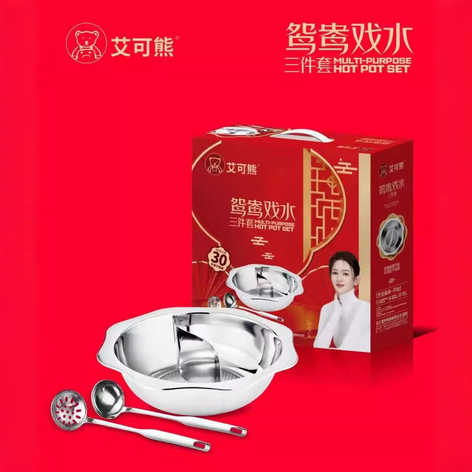 艾可熊30cmオシドリ水遊び三点セットステンレス鍋盆太陽盆鍋鍋分格盆卸売り