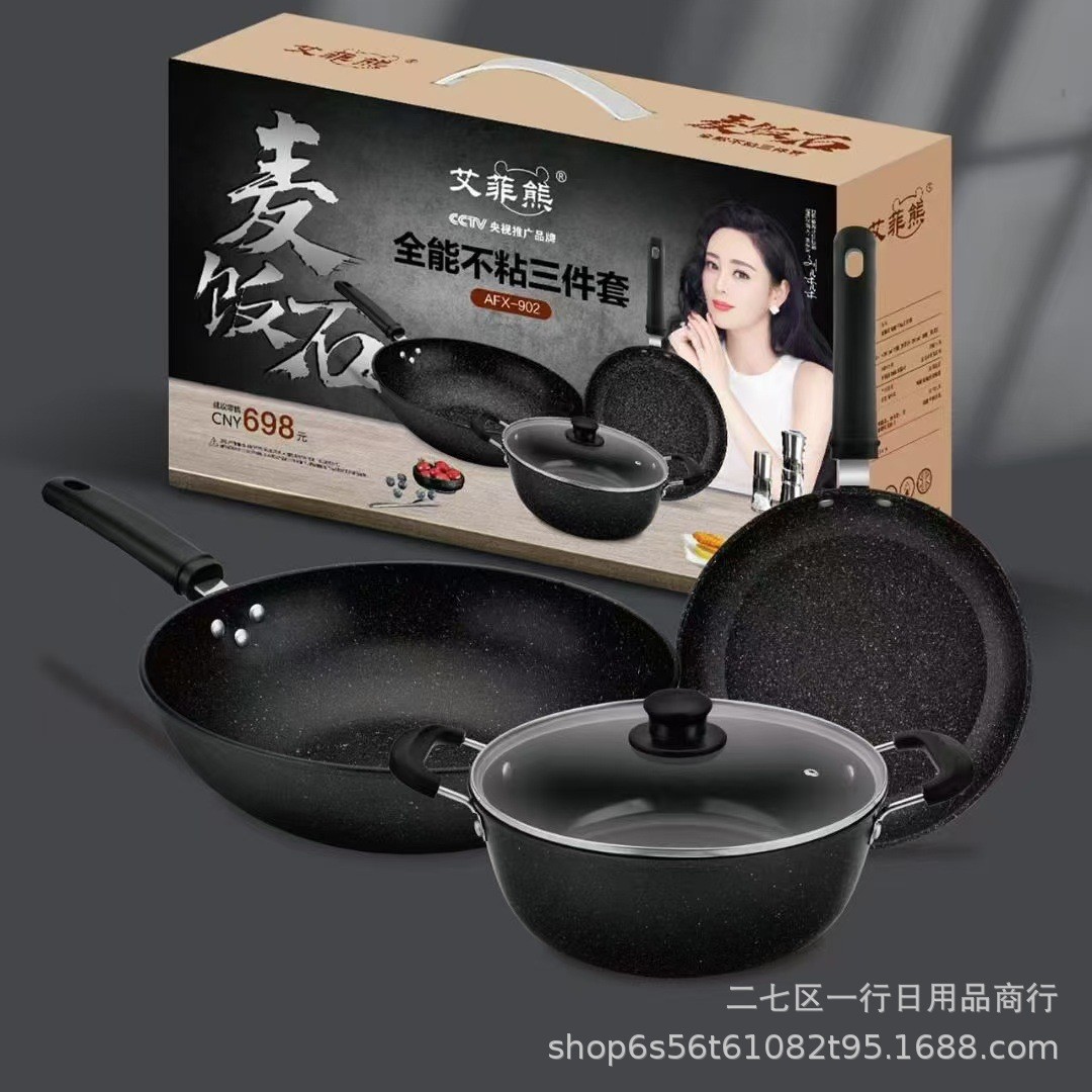 艾菲熊鍋具三点セット炒め鍋スープ鍋麦飯石具セット広告キャンペーンプレゼント卸売り
