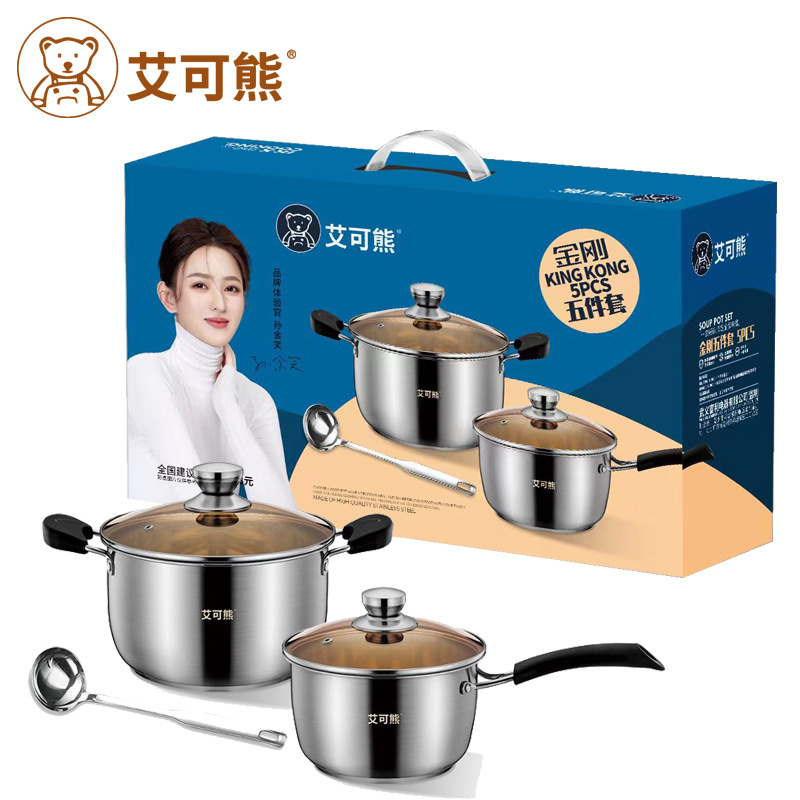 艾可熊金剛五点セット複合鋼鍋ステンレス乳鍋スープスプーン高級鍋セット共同購入