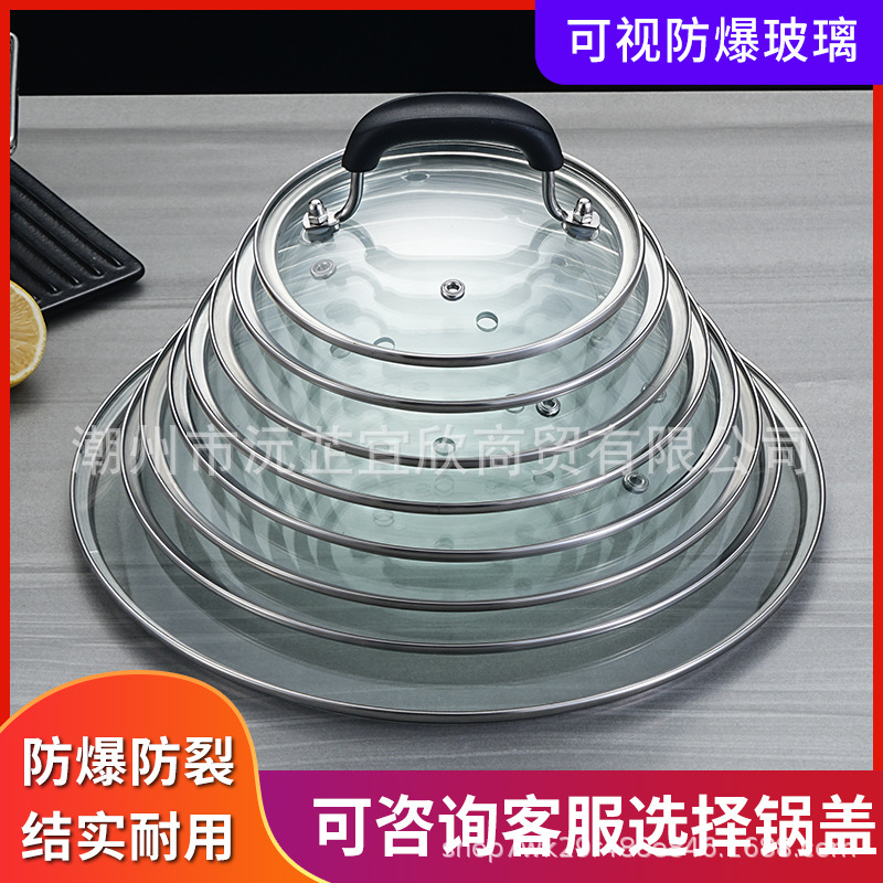 ステンレス鍋蓋炒め鍋蓋通用万能組み合わせ蓋家庭用可視鋼化耐高温防爆蓋卸売り