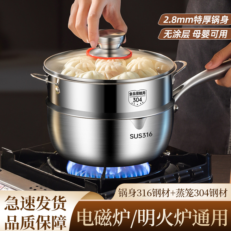 パーマ防止無コーティング補助鍋316特厚ステンレス赤ちゃん専用ミルク鍋赤ちゃん蒸煮一体ミルク鍋