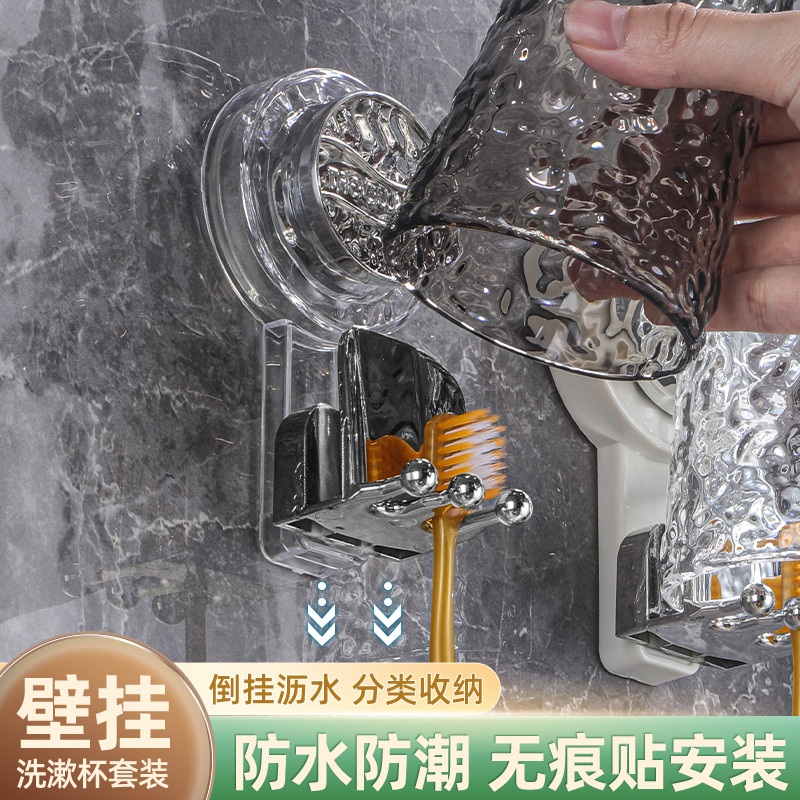 クロスボーダー吸盤歯ブラシホルダー穴開け新型うがいコップ壁掛け式トイレ歯コップ歯磨き粉電動歯ブラシ