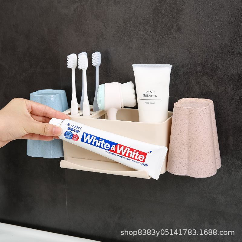 マグネット式壁挂け歯ブラシホルダーセット穴あき无しうがいコップ歯磨き粉家庭用浴室収纳ラック