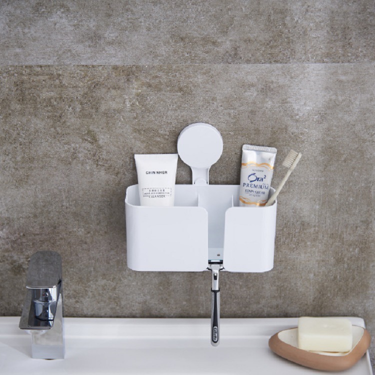 工場直送 プラスチック製バスルーム収納バスケット 吸盤式水切り壁掛け収納 滑り止め設計 歯ブラシカップ