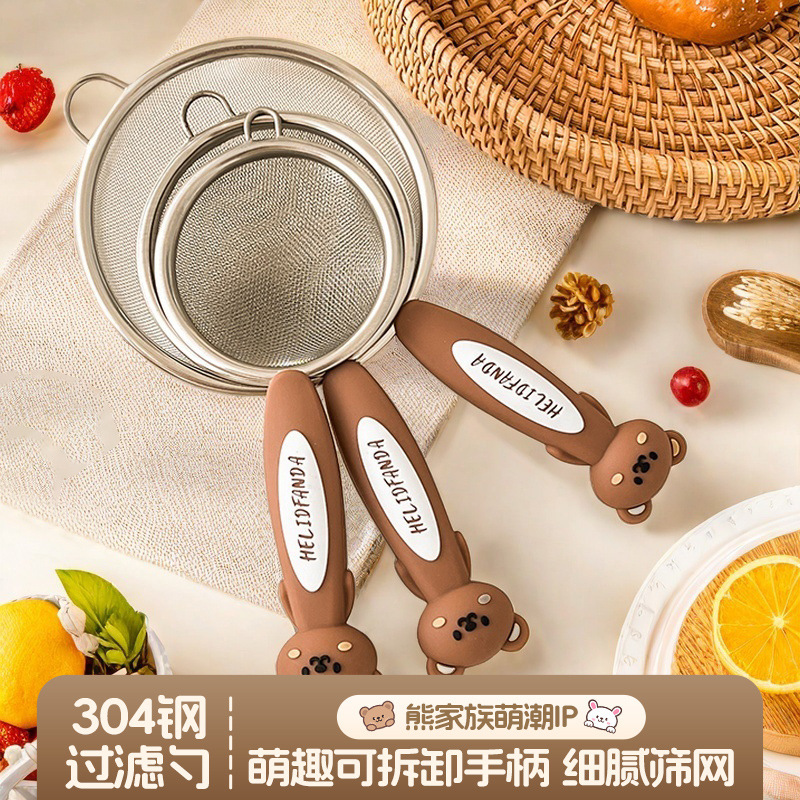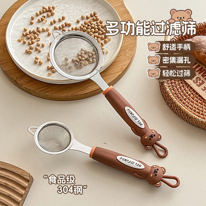 熊家族304豆乳ジュース濾過スプーン焙煎小麦粉デザートネット篩家庭用赤ちゃん補助食ガジェット