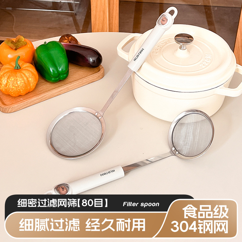 熊家族304ステンレス漏匙豆乳ジュース濾過スプーン家庭用焙煎粉篩は密網油格を厚くする