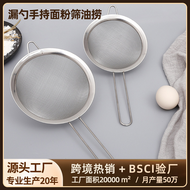 304ステンレス短木柄網漏油格ろ過網調理器具フェンス網すくい面粉篩油滓ろ過