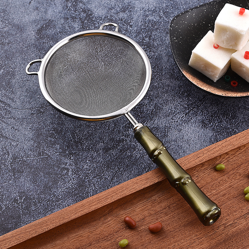 304ステンレスプラスチック竹節ハンドル双円耳茶漏フィルタネット新中国式漏匙豆乳過漏網スプーン