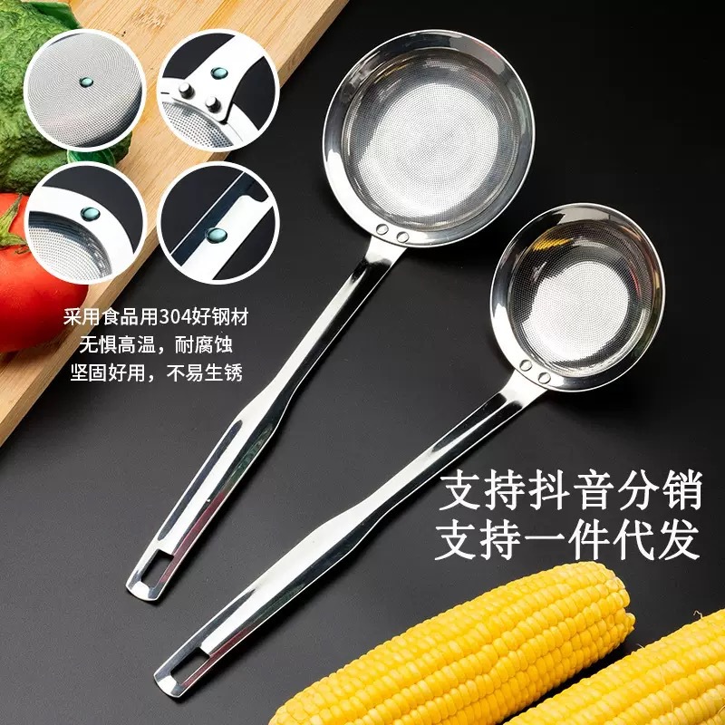 304ステンレスのスプーンの豆乳のツバメの巣の濾過ネットの台所の多機能の油は広い辺のネットをあけて濾過のスプーンを漏らします。
