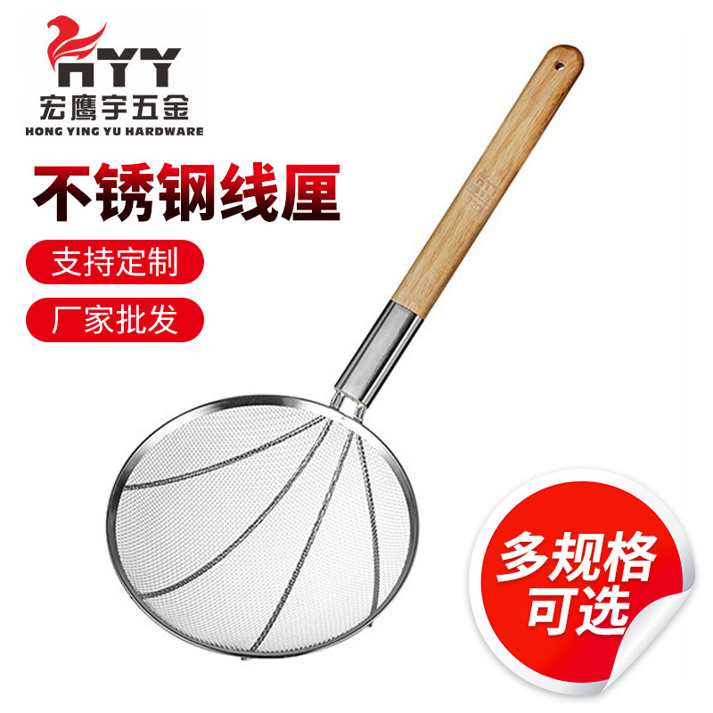 欧源304ステンレス製家庭用油こし網、木製ハンドル付き、麺や豆乳の濾し、滑り止め、油量調節機能付き
