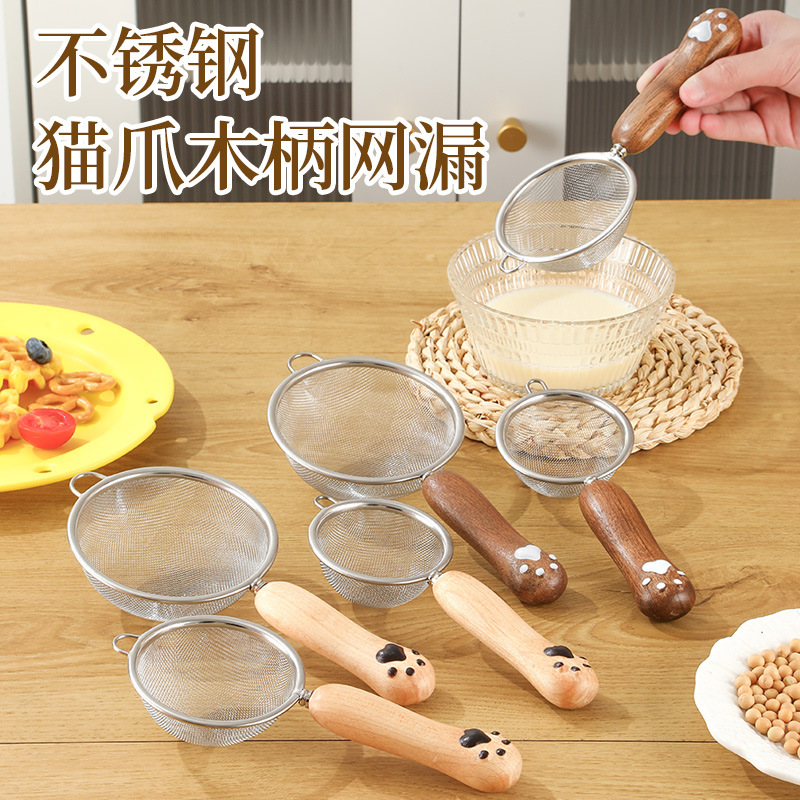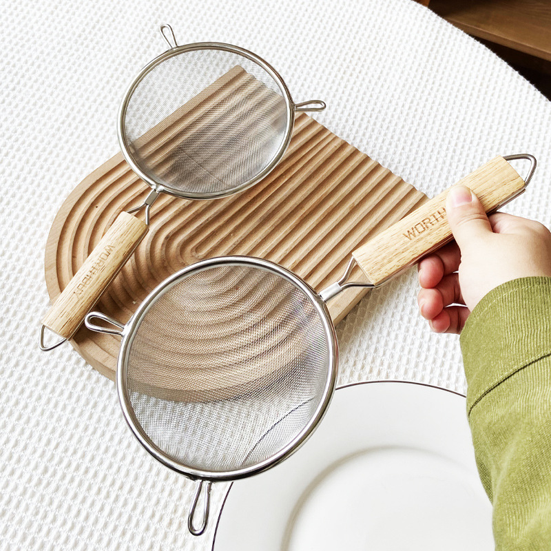 家庭用ステンレス大型網漏豆乳ジュース濾過スプーン小麦粉焙煎濾過ふるい木柄両耳小調理器具