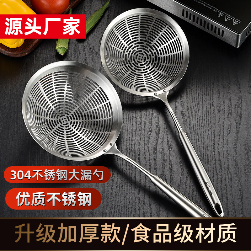 ステンレス製ヌードルスプーン、餃子スプーン、油ザル、家庭用キッチン用厚く幅広のザル、鍋用ザル