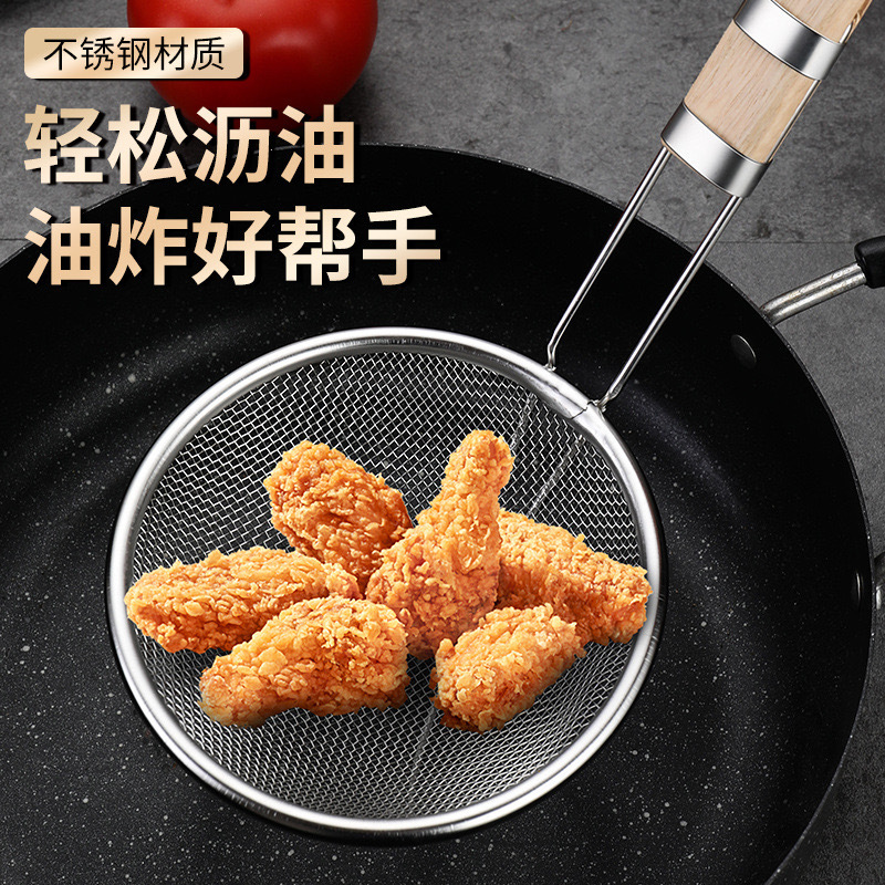 非磁性ステンレスネット漏荷木柄鍋すくい垣揚げすくい面スプーン卸売り多機能家庭用商用漏スプーン