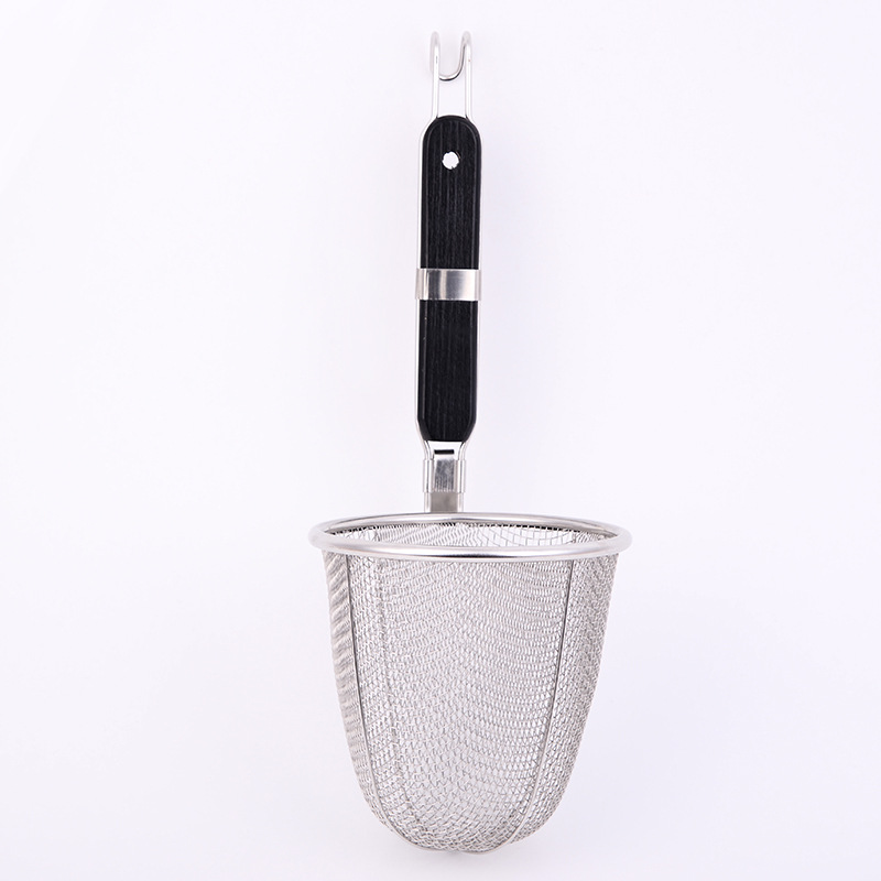 ステンレスの粉垣の米線は網の黒色の木の柄の粉を漏らして麻をすくいます。