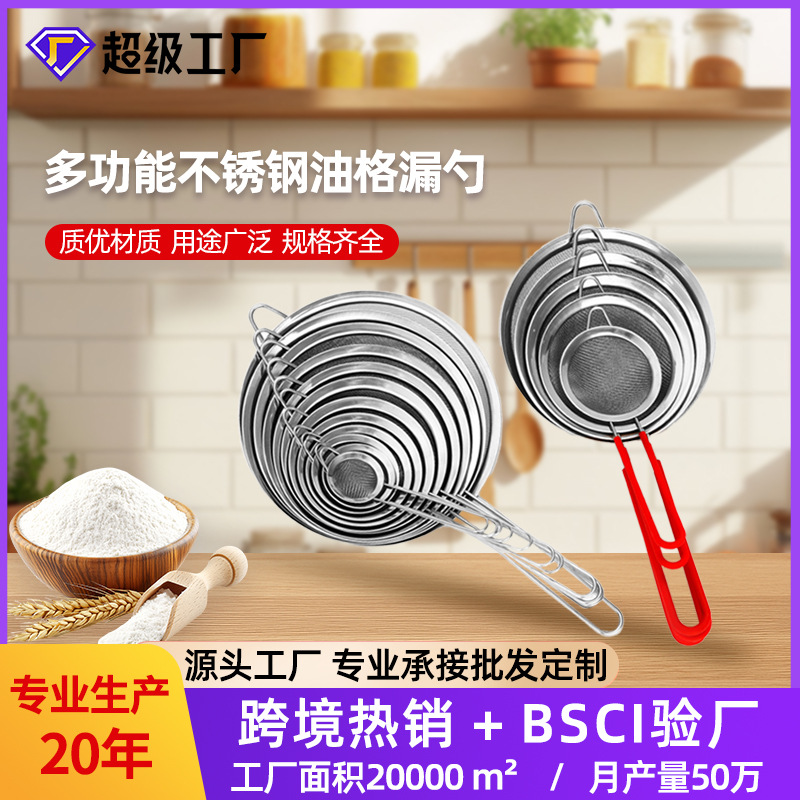 304漏匙ステンレス篩網ホテルレストラン火鍋スプーン家庭用掛端鍋漏匙双網小麦粉篩