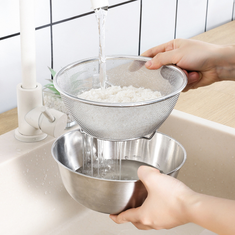 米ふるい3点セット キッチン米洗い桶 ステンレス水切りかご 野菜洗いギフトボウルセット 在庫豊富、即納可能