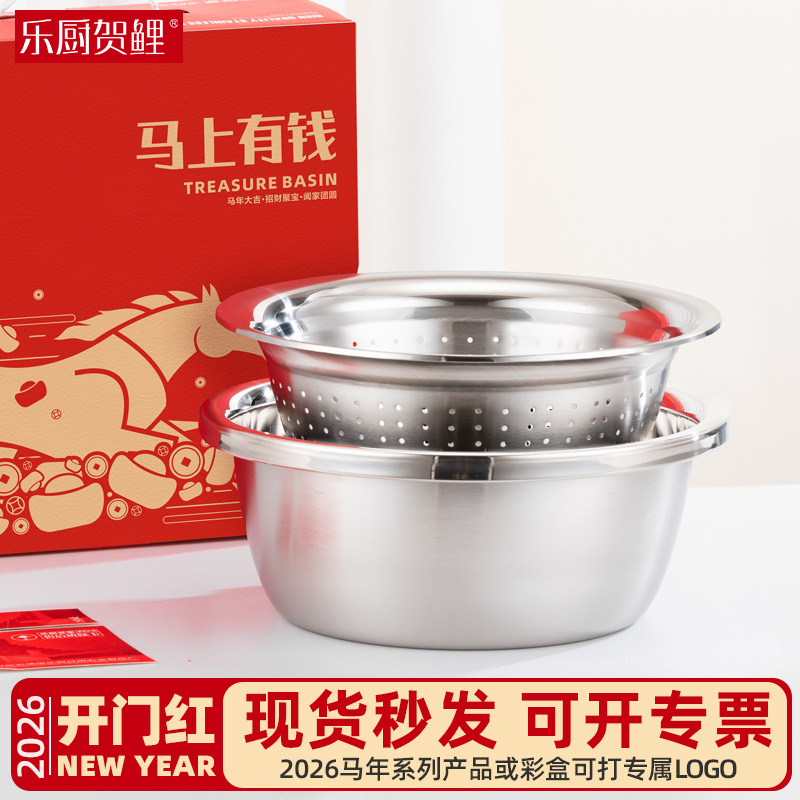 開運ステンレス製三件セット 聚宝盆 米ふるい 野菜洗い桶 辰年干支箱 従業員福利厚生ギフト