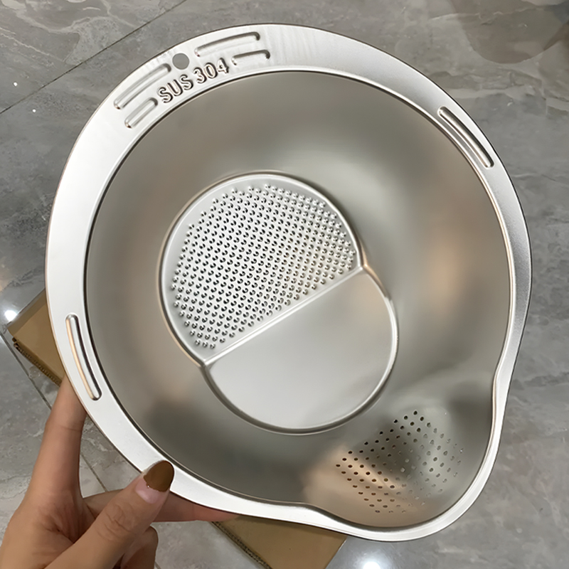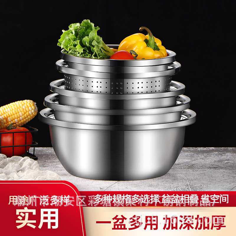 不锈钢刨丝盆三件套厨房家用多功能擦丝盆漏盆淘米盆沥水盆洗菜盆