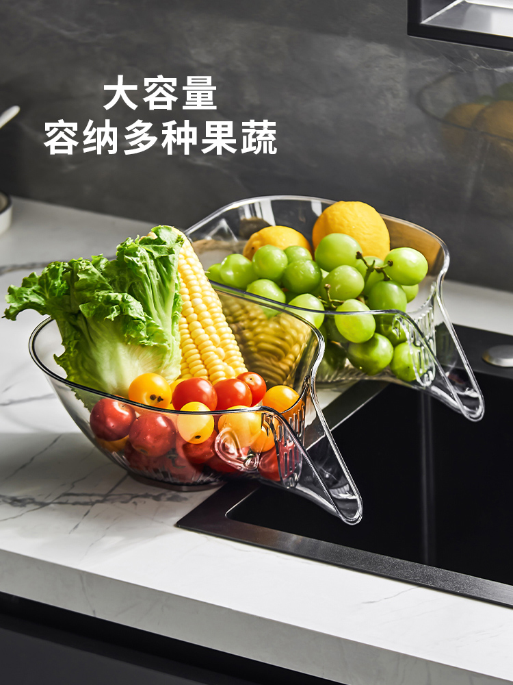 双层可旋转沥水篮沥水盆厨房洗菜盆子洗水果篮沥水洗菜篮果盘