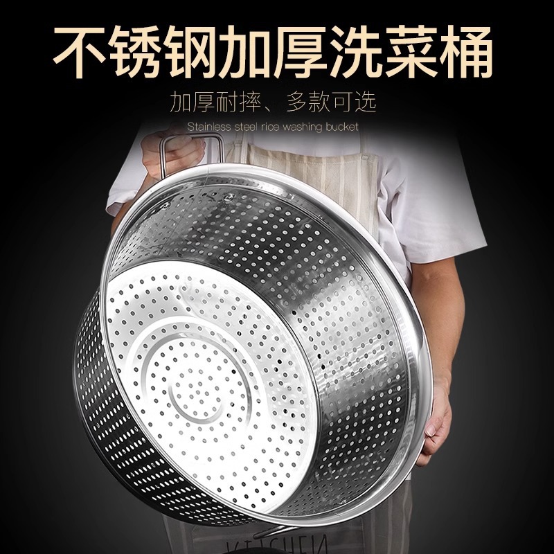 厚い大容量のステンレス製の水たまりのたらいは手を持って野菜を洗う桶の業務用台所の米を洗うふるいの水たまりのかごを洗います。