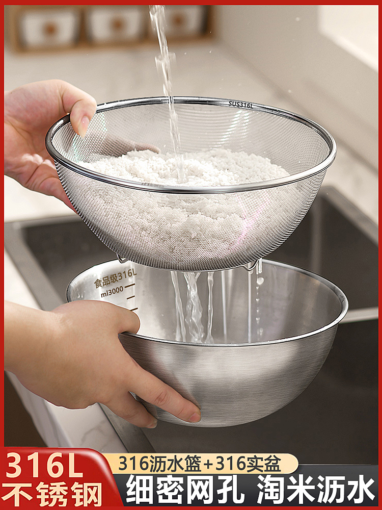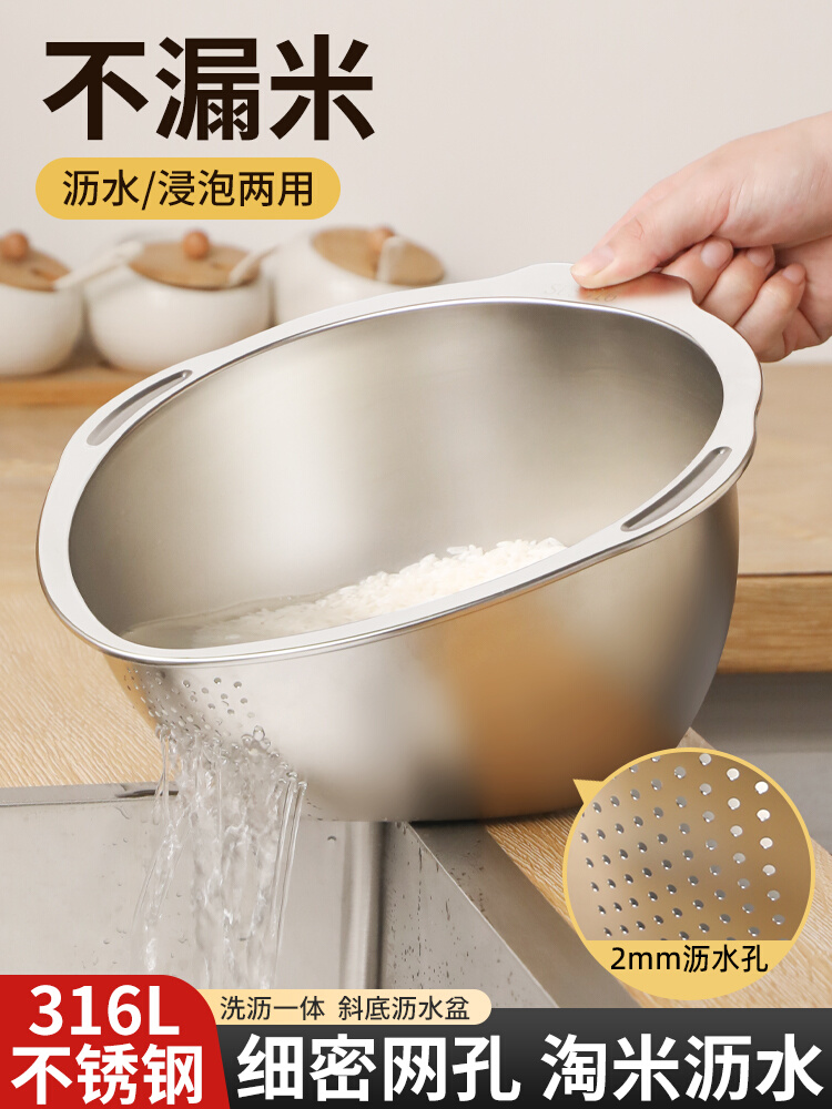 316ステンレスの水たまりの多機能の米を洗うふるいの果物の皿の家庭用の台所の野菜のたらい