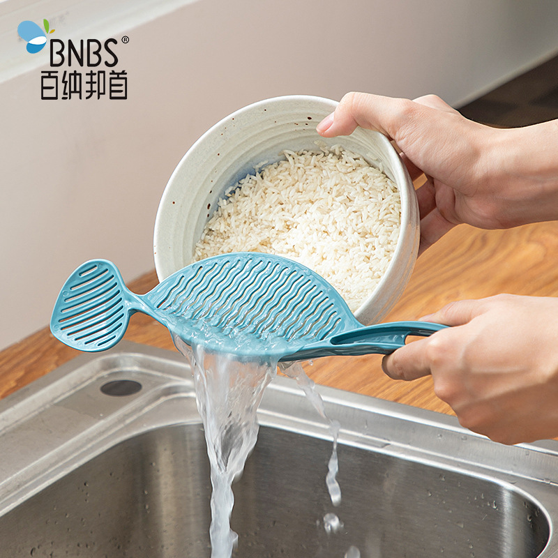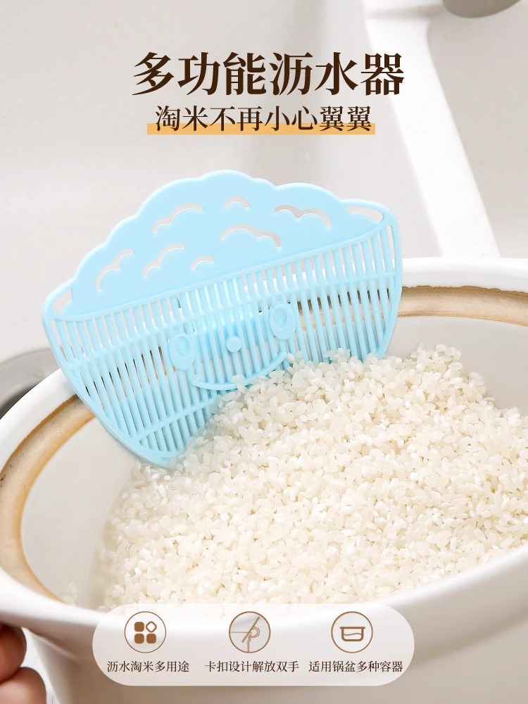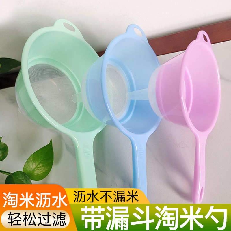 プラスチックの米ふるいは取っ手を持って家庭用の米を洗って水をふるいます。