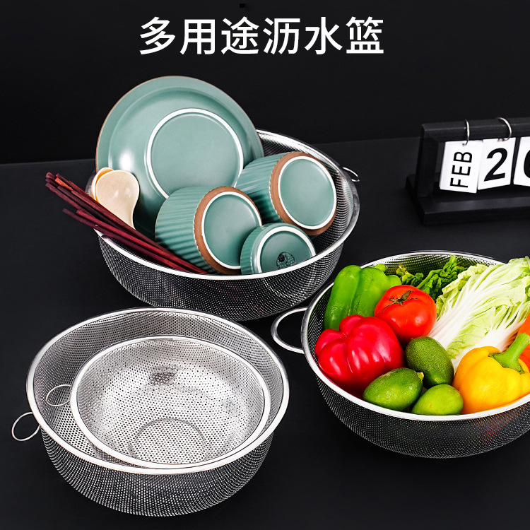 食品級304ステンレス盆家庭用米台所卵と洗面器の野菜を洗って米を研いで水たまりをふるいにかける