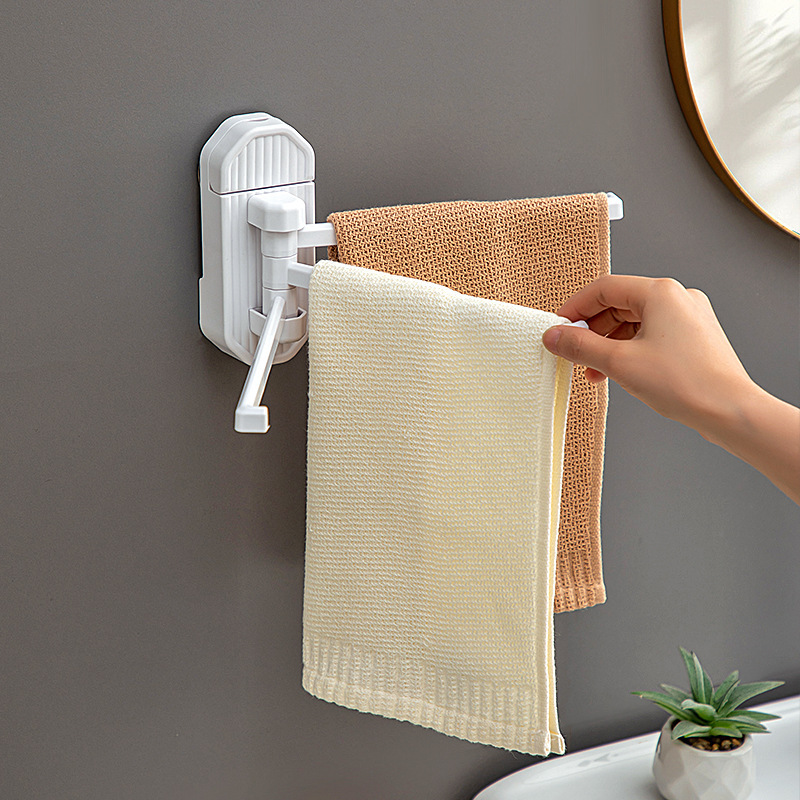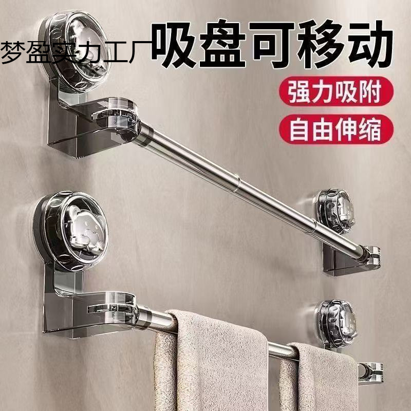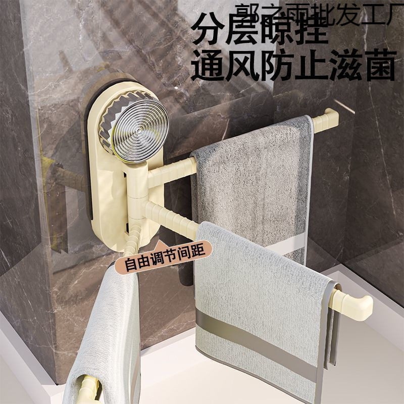 新しい吸盤タオルラックインターネットセレブパンチフリー壁掛け回転収納ラックバスルームタオルバーマルチロッド整理用